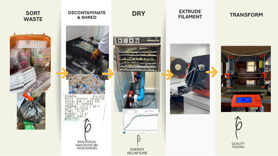 Quality and safety remain central throughout the process. Biological indicator monitoring and quality testing ensure that recycled materials meet rigorous standards, while energy recapture strategies improve overall efficiency. The result is a system that is not only sustainable, but also reliable and scalable.